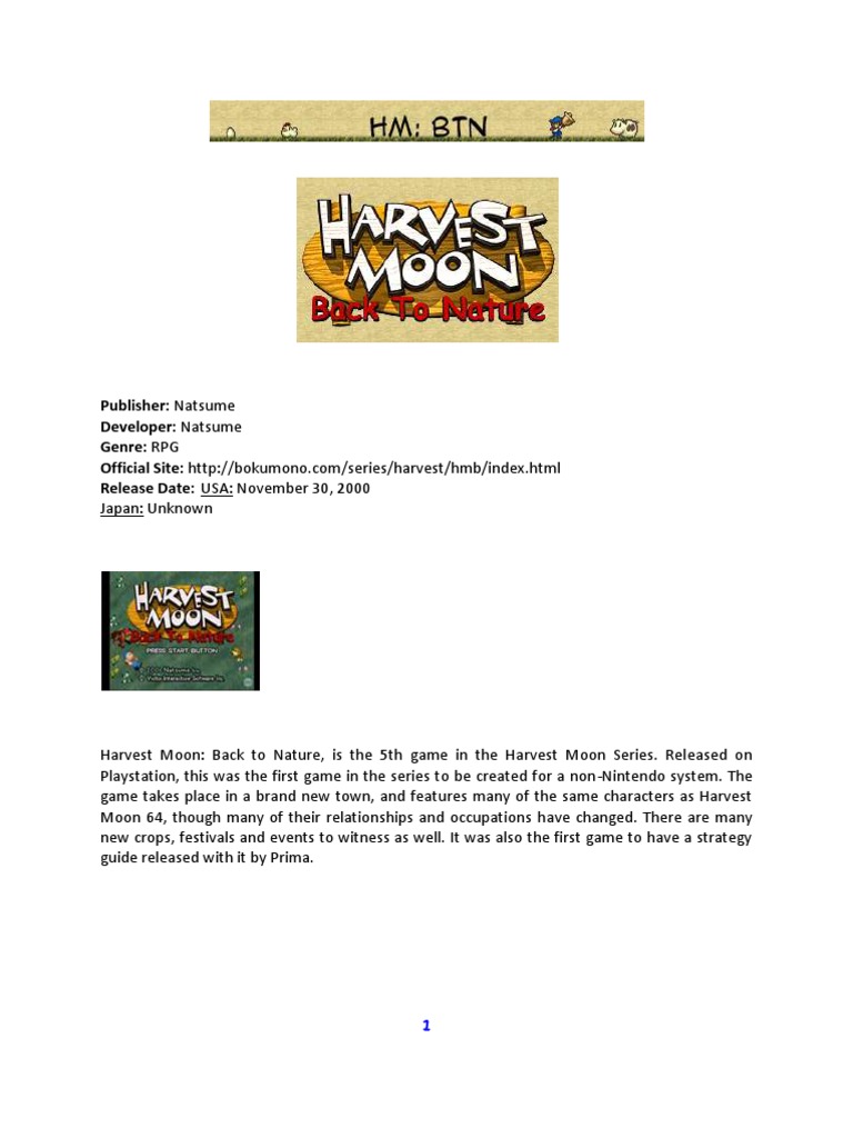Harvest Moon Back To Nature Complete Guide Book Nature 19k Views